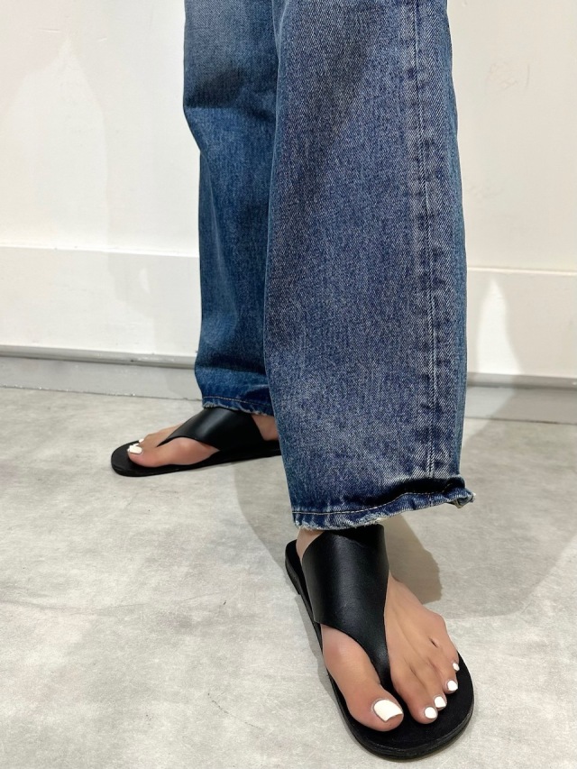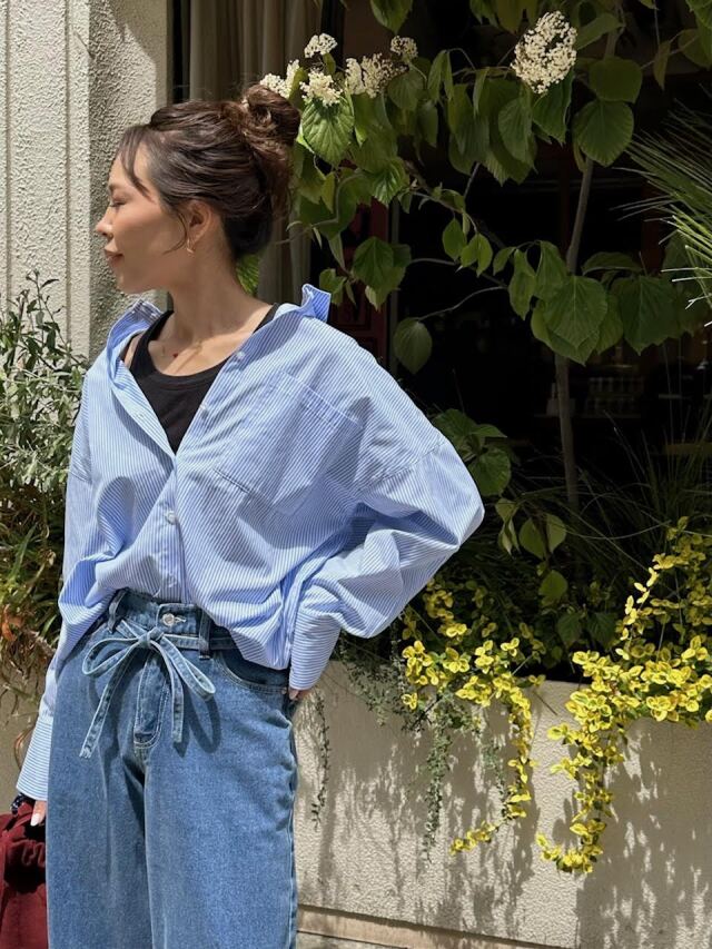 【 2set 】Washed over size denim shirt(blue)+ Rib knit easy flare pants( black)