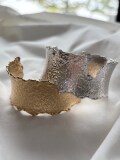 表面に施したハンマー加工が独特の表情を生み出す、ウェーブデザインバングル。