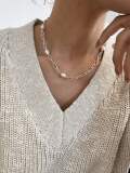 マットなシルバーチェーンと淡水パールを組み合わせたすすめのコンビネックレス。