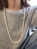 上品な輝きでコーディネートを格上げする、ロングパールネックレス。