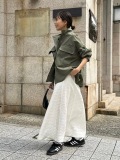 膨らみのある素材とふんわりとしたフレアなシルエットの華やかなボリューム感が新鮮で上品な雰囲気。