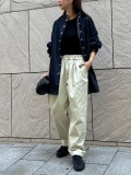 太めのワイドとゆるっとしたサイジングですが、フロント部分のタックが美ラインを作ってくれるので綺麗なシルエットが実現。