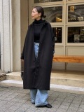 首元まで包み込むスタンドカラーが洗練された印象を演出するロングコート。