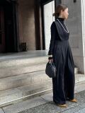 とろみ感ある素材。程よいセミワイドシルエットでリラックス感がある一枚。