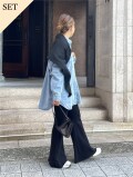 デニムシャツとリブニットフレアパンツがセットでお得に!