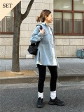 美脚見えスキニーパンツを組み合わせた万能セット。