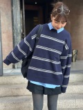 柔らかなアルパカタッチ素材を使用したボーダーニットプルオーバー!