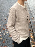 異なる糸を組み合わせたミックス編みが魅力のヘンリーネックニット。