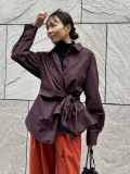 アシンメトリーリボンデザインが立体的なシルエットを演出するシャツ。