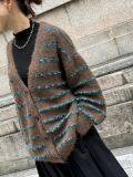 シンプルな中に映える配色ラインが印象的なVネックニットカーディガン。