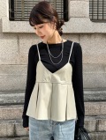 軽くてやわらかな着心地&ウォッシャブル素材のフェイクレザーキャミソール