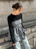 カットソーと伸縮性あるペプラムデザインがセットになったレイヤードペプラムトップス。
