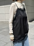 上品な光沢感と繊細なレースディテールが女性らしさを引き立てるサテン素材のキャミソール。
