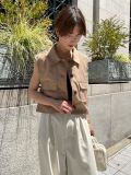 立体的なポケットとマーブルボタンが特徴的なショート丈ワークベスト。
