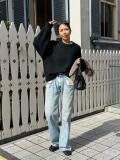 ワイドパンツ、タイトスカート、デニムにミニ丈スカートなどどんなボトムにもハマるニュアンスニットです。