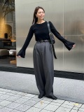 シンプルなシルエットながらも袖口の大ぶりなフレアスリーブが存在感抜群。
