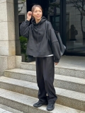 ブラックの スラックスを合わせてワントーンコーデでラフにカッコよくスタイリング。