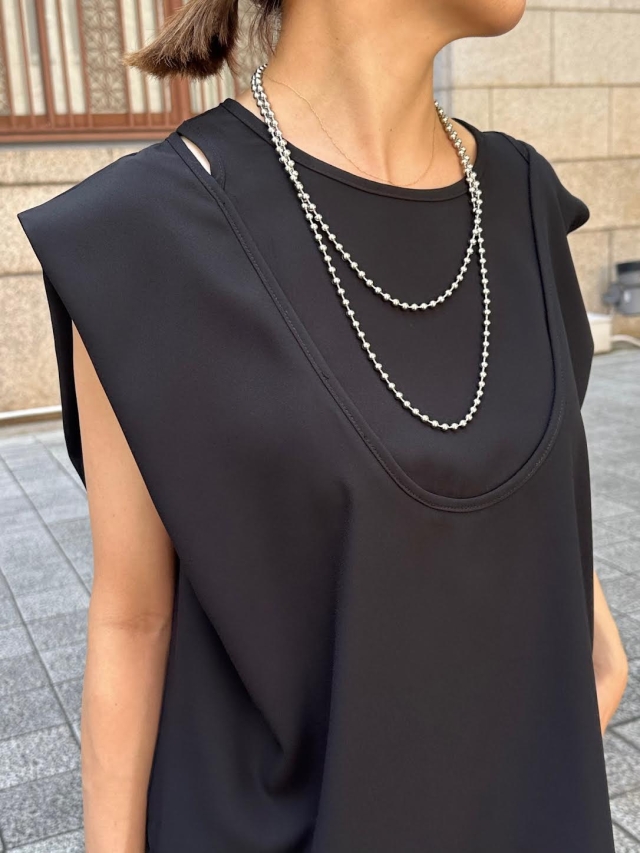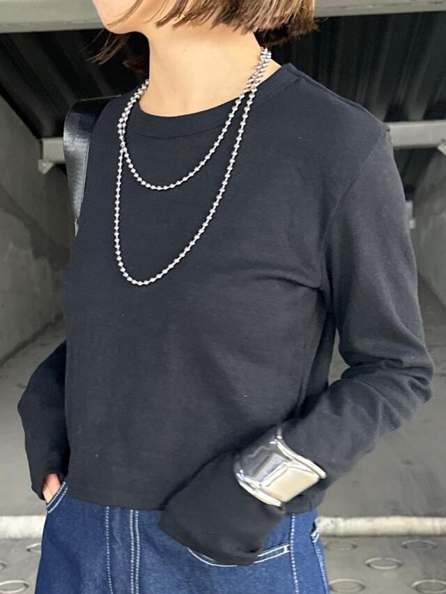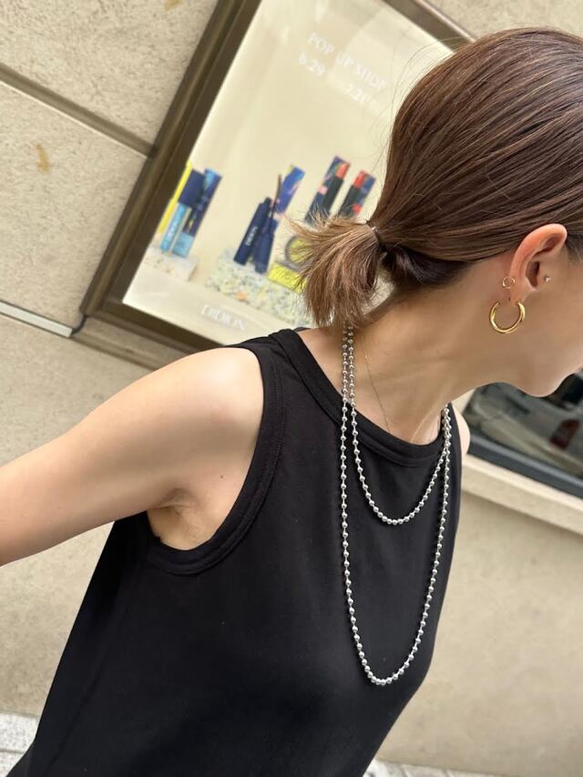 シンプルながらも程よいボリューム感のあるボールチェーンロングネックレス。