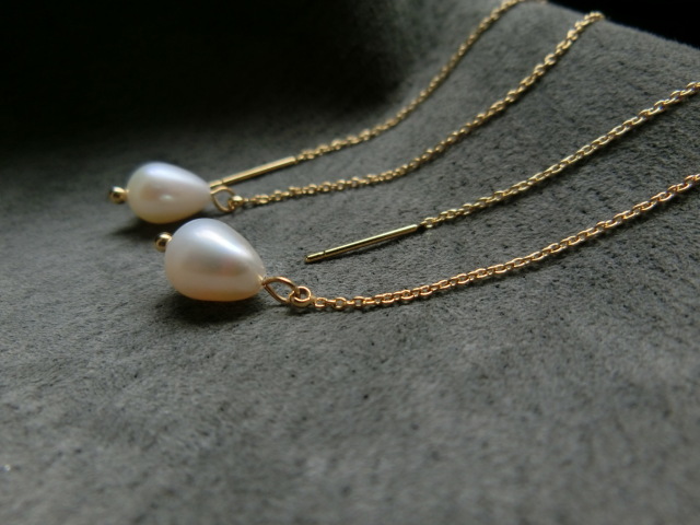 ロングデザインに一粒パールでフェミニンに仕上げたピアス。