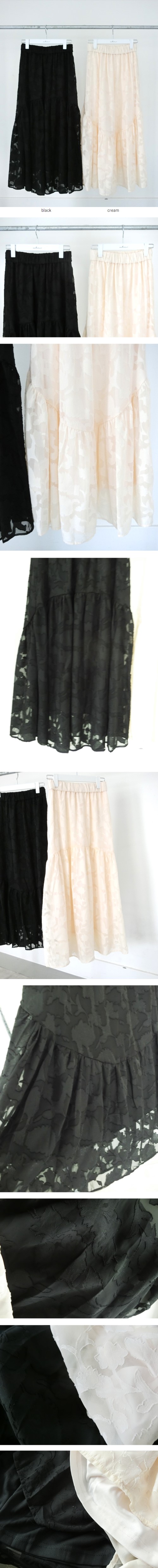 ふんわりとしたシルエットが女性らしい雰囲気のジャガードレーススカート。