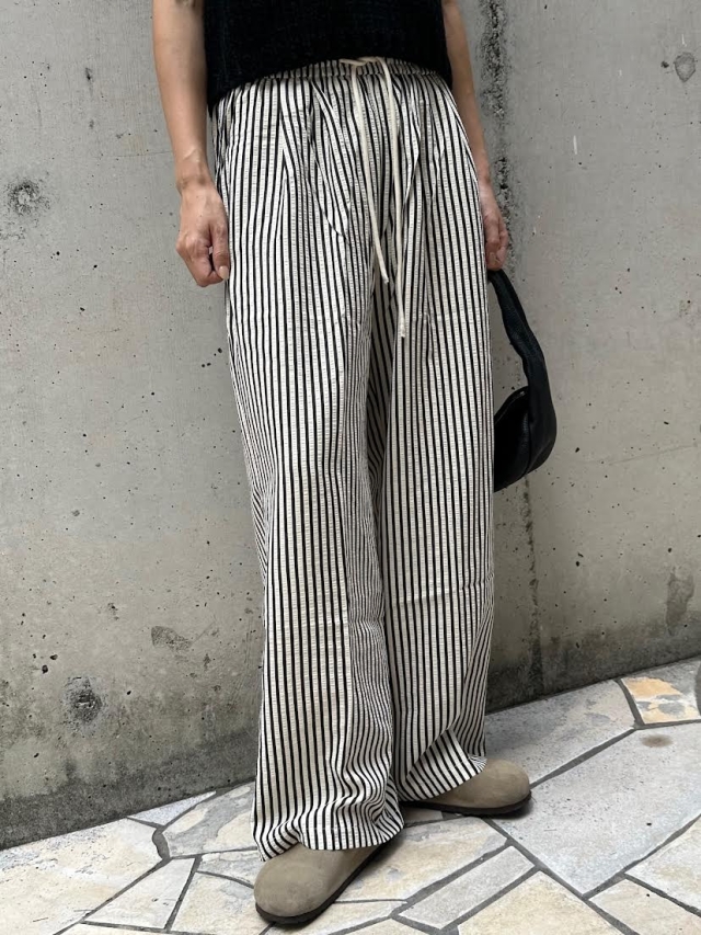 ナチュラルなくすみカラーのストライプイージーパンツです。