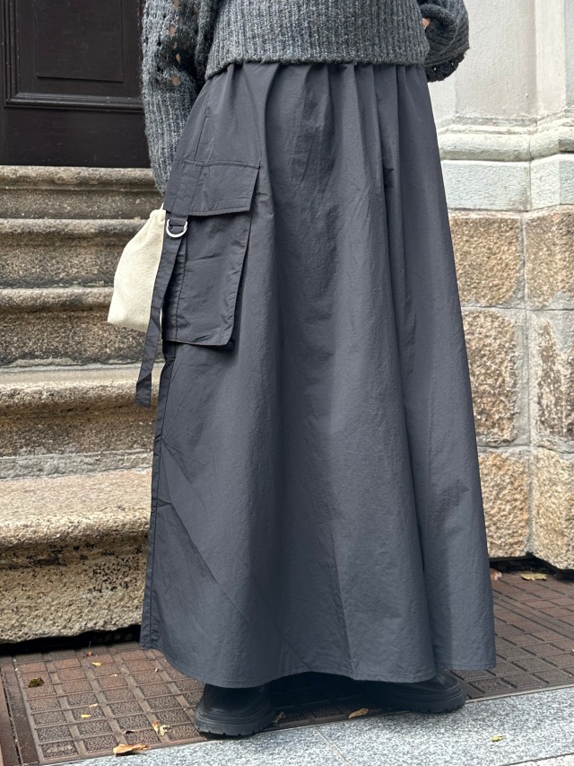 大人カジュアルにちょうどいいナイロンカーゴスカート。