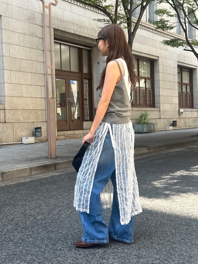 ジャンルレスにマッチするレース生地を使用し、ボトムスを選ばずにプラスワンできるアイテムです。