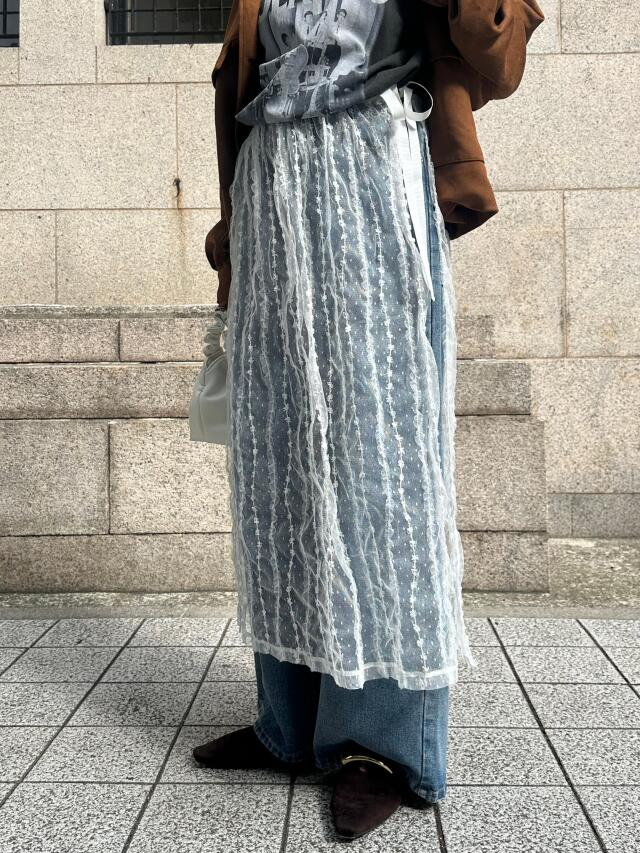 優美に揺れるレース素材が大人可愛いラップスカート。