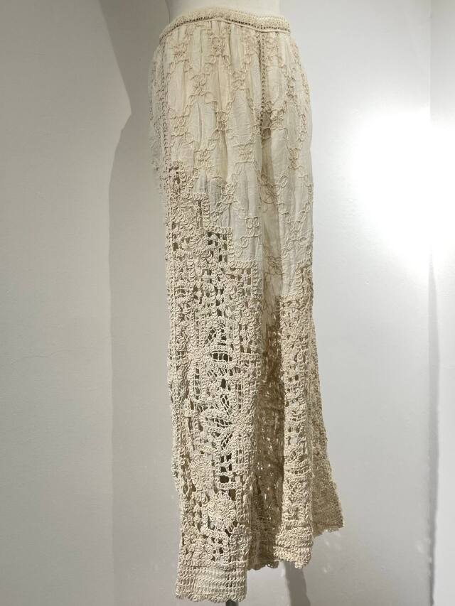 繊細なカギ編み模様が目を惹く、涼しげな刺繍デザインのカギ編みパンツ