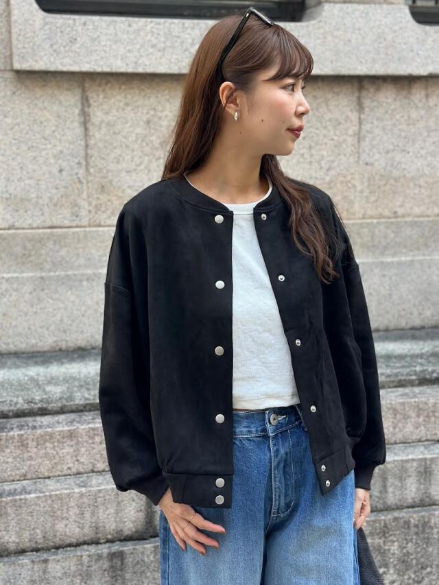 カジュアルなデザインのスタジャンを高級感のあるスエード素材で仕上げ、