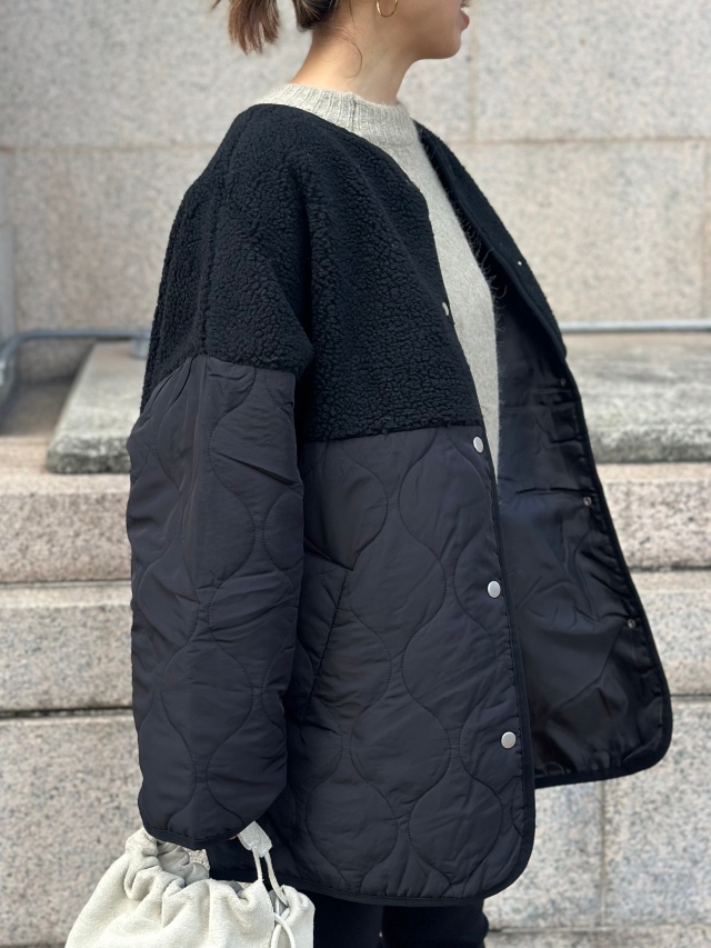 ボアとキルティングのコンビ使いがお洒落なジャケット。