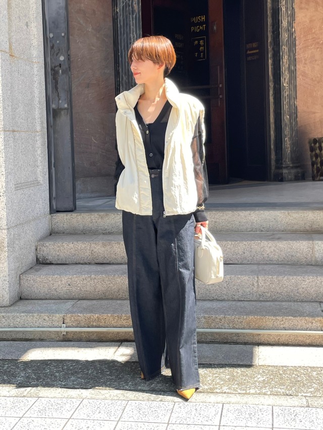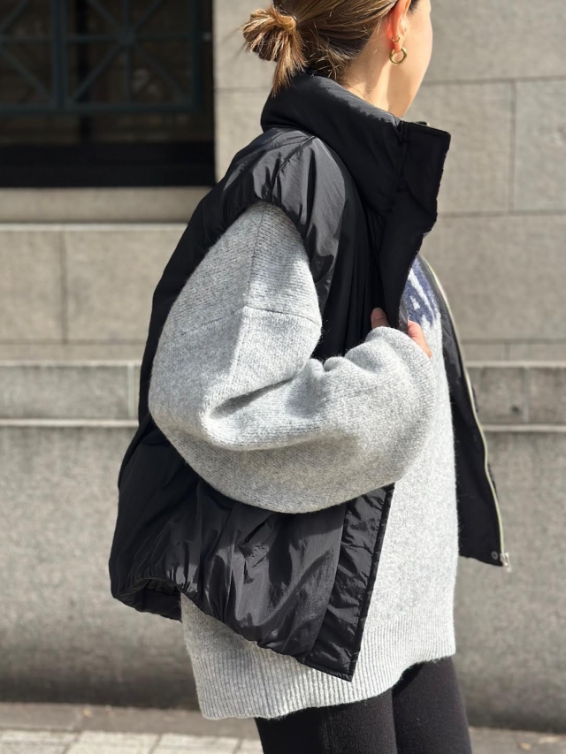 丸みのあるバルーンシルエットで、軽やかに映える中綿ダウンベスト。