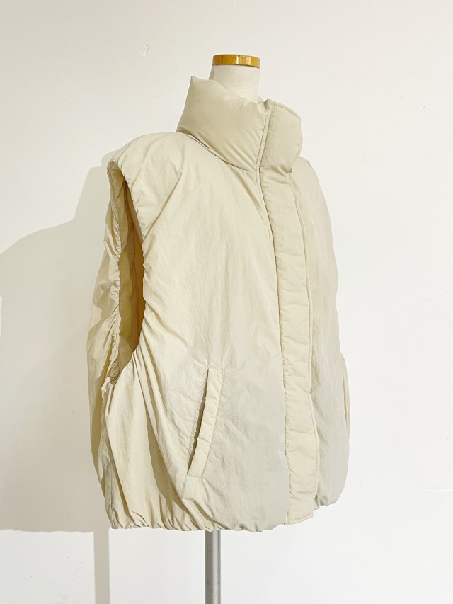 ボリューミーなバルーンシルエットが今っぽい薄中綿ベスト。軽量感があり着心地も◎