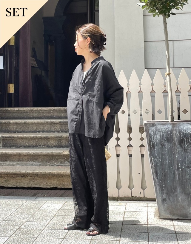 • 【 2set 】Cotton cambric voile shirt(black) + Lace relax wide pants